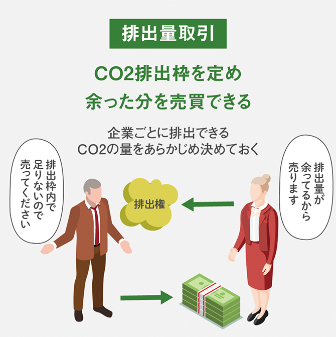 排出量取引制度は株式やFXなどの投資とは異なり、温室効果ガスを排出する権利に値段が付いていて取引所で売買されています。